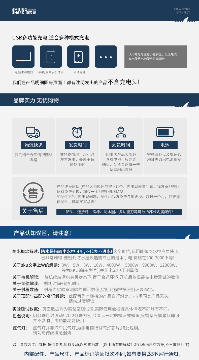 微笑鲨 强光铝合金手电筒